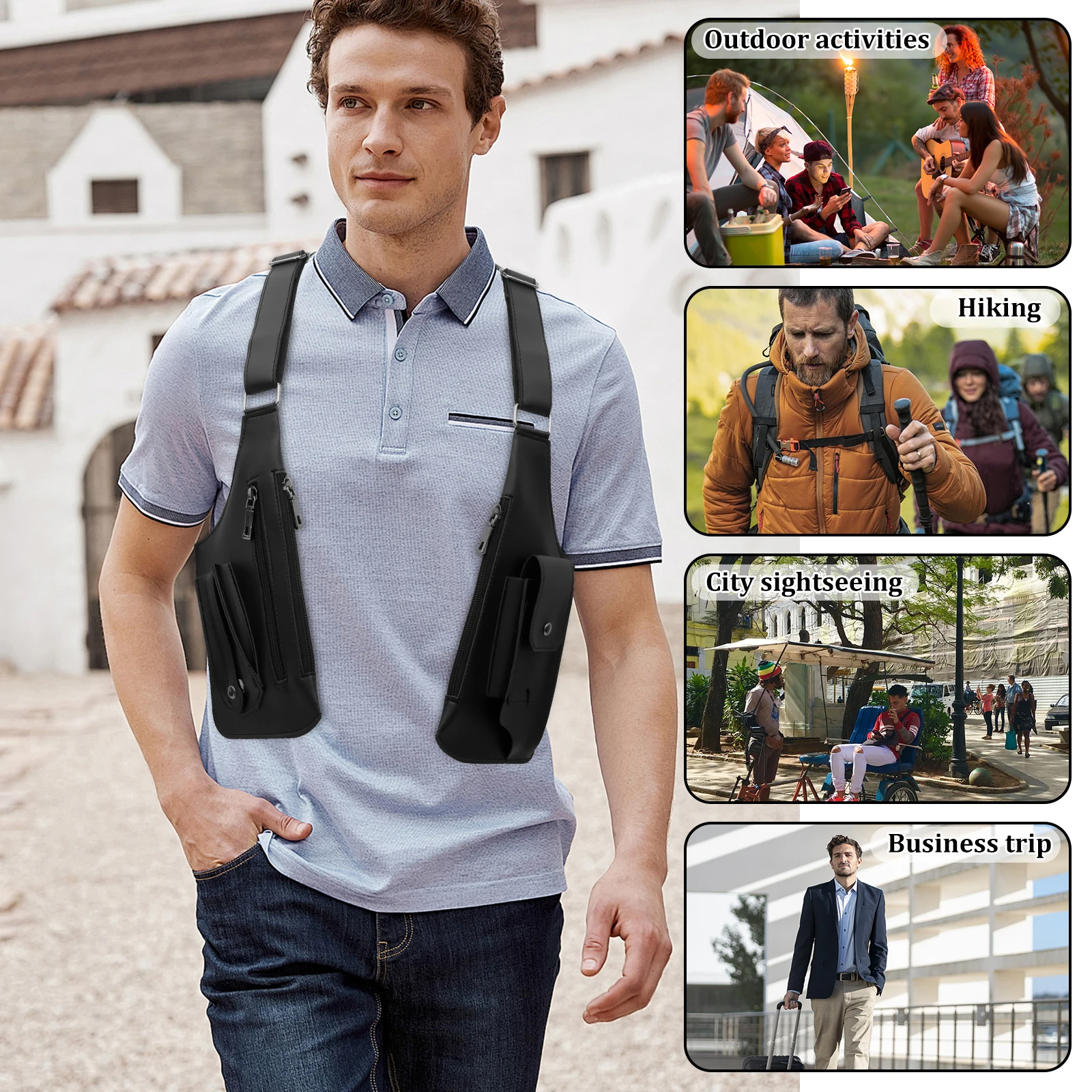 Double Shoulder Armpit Bag for Men Anti Theft Hidden Adjustable Strap Holster Water Resistant Crossbody Pack for Work Travel